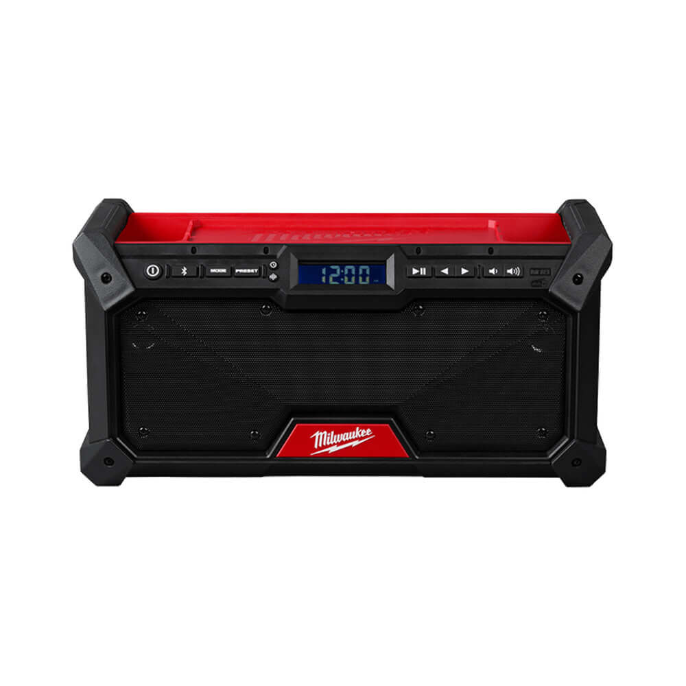 The Milwaukee M18 Jobsite Radio (M18JSRDAB20) delivers a premium audio experience with exceptional durability for the demanding jobsite. It features a high-quality speaker and a powerful 40W amplifier, providing rich, full-range sound. The integrated DAB+ tuner, along with AM and FM, utilizes a digital processor to ensure high reception accuracy and signal clarity. Built to withstand tough conditions, the radio has a shock-absorbing polymer body and metal speaker grills for superior impact protection. With Bluetooth connectivity for wireless streaming and a 2.1A USB charger, you can keep your devices powered and the music playing all day. This versatile radio is an essential companion for professionals, offering entertainment and convenience in a rugged, portable package.